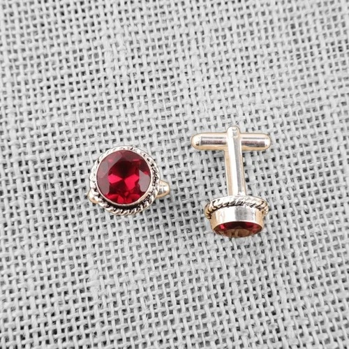925 Sterling Silver Natural Pink Rubellite White Art Deco Groom Cuffs
