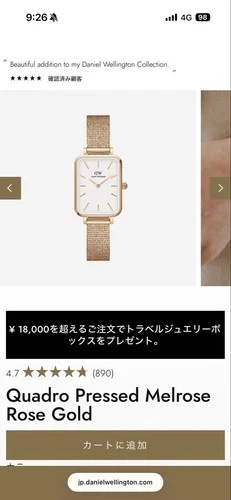 Daniel Wellington Quadro Rose Gold Square Mesh Watch Used From Japan