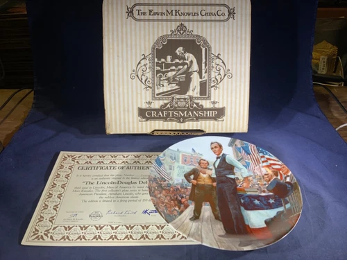 Y4-2 ABRAHAM LINCOLN - DOUGLAS DEBATE 8.5” DECORATIVE PLATE - 1987 EDWIN KNOWLES