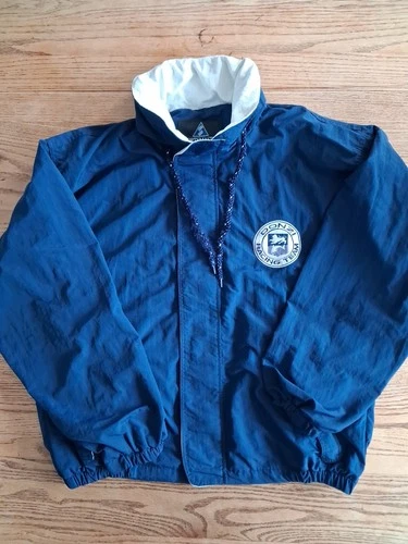 Vtg Donzi Racing Team Sportsmaster Jacket Embroidered Hood Navy Mens Sz L USA