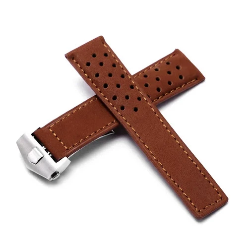 20mm-24mm Men Leather Watchband Folding Buckle Durable Wrist Strap For TAG Heuer