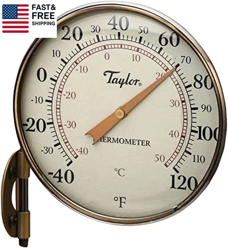 Heritage Metal Dial Thermometer, Easy to Read Numbers for Patio, Pool, and Indoo