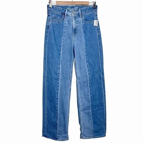 Old Navy Extra High Rise Sky Hi Wide Leg Jeans Womens Size 2 Two Toned Stretch