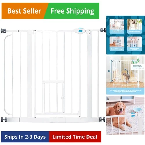 Carlson 29.5–36.5” Extra Wide Dog Gate with Small Pet Door, Walk-Through Pres...
