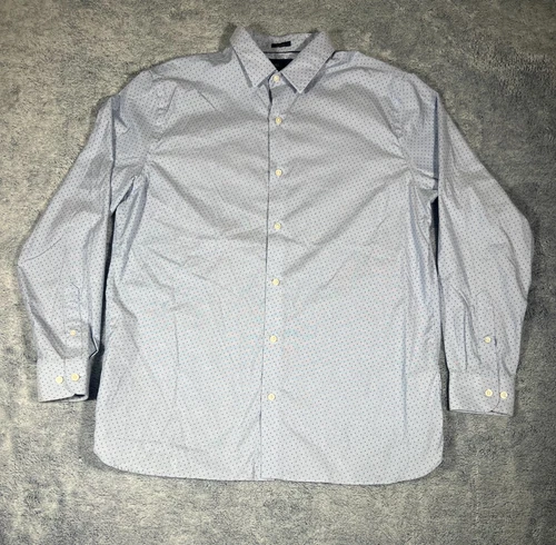Fairlane Regular Fit Dress Shirt Men's L Blue w/ Dots Non-Iron Stretch EUC