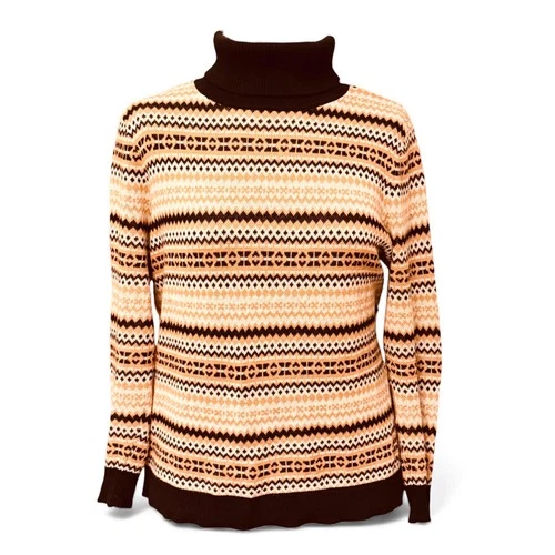 Liberty Lane Women's Fair Isle Turtleneck Sweater Geometric Mustard/Black Sz 1X