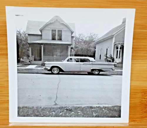 Vtg Snapshot Photograph 1959 Ford Fairlane Galaxie 500 Auto Parked on Street