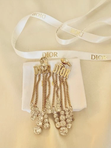 Mother's Day! Dior Logo Crystal Fringe Drop Tribale Earrings, Gift Box & Bag