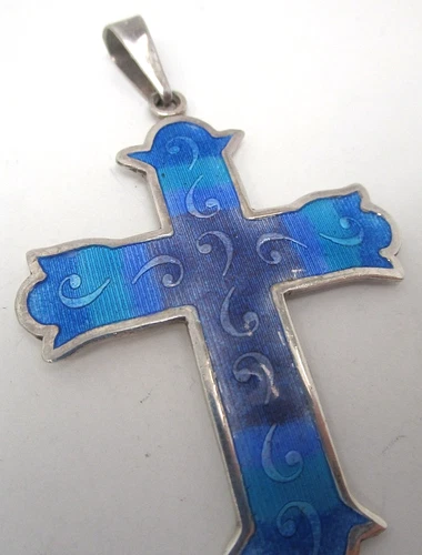 Vintage Sterling Silver Blue Enamel Cross Pendant