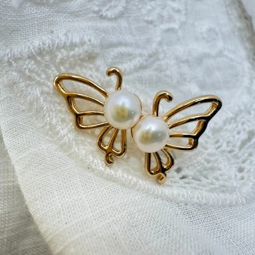 Natural Freshwater Pearl Earrings 14K Gold Plated Butterfly Women Bridal Stud