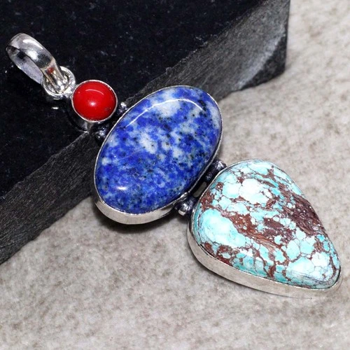 Large New Lander Turquoise Lapis Lazuli Pendant Gemstone Size 2.7" GW