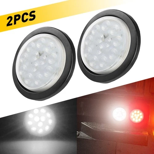 2X 4 Inch LED Reverse Backup Tail Park Lights Round Trailer Truck Clear Lens 12V