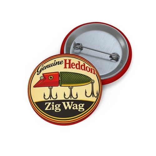 Genuine Heddon Zig Wag Fishing Tackle Lure Pin Vintage Style Pinback Button