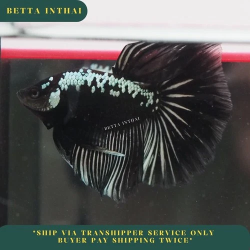Live Betta Fish Black Samurai Halfmoon Male 3.5 Months from Thailand 6A1