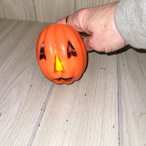 Vtg Orange Jack-O'-Lantern Flash Light Halloween Pumpkin Blowmold Light