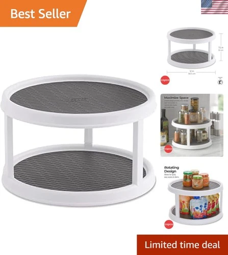 Durable White/Gray 12-Inch Non-Skid Turntable - Effortless Kitchen Organization