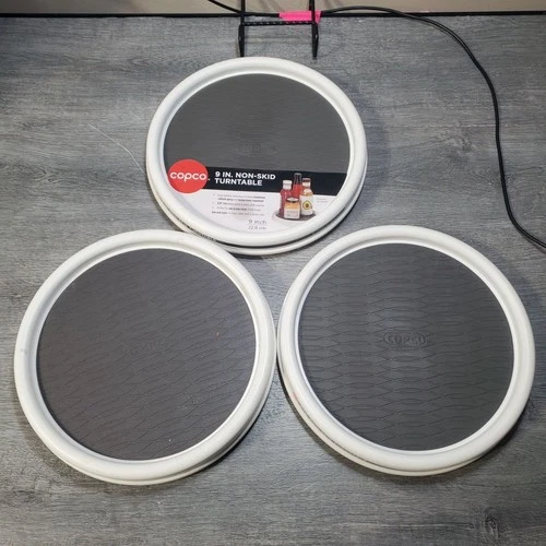 3 Copco Non-Skid Pantry Cabinet Lazy Susan Turntable 9-Inch White Gray