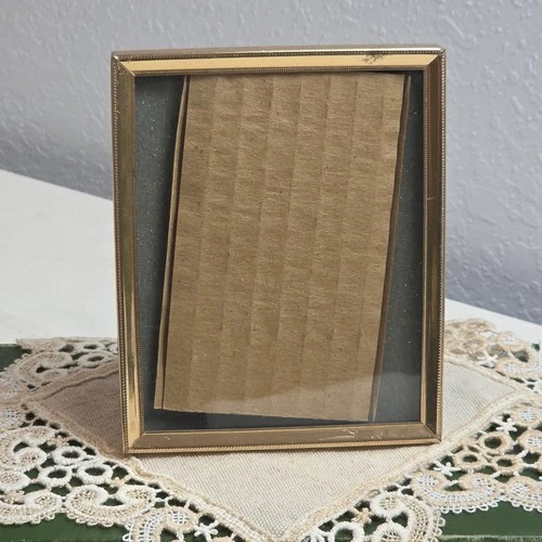 Vintage Gold Tone Metal Picture Frame Etched Chevron Tabletop