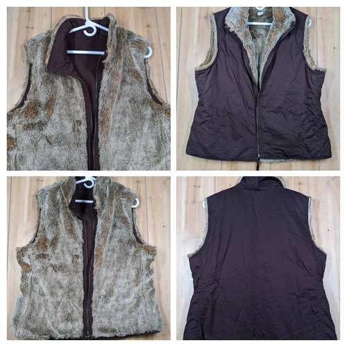 Gap Reversible Vest Womens XL Brown Faux Fur Cotton Lined Full Zip Pockets Gilet