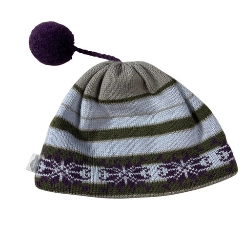 Turtle Fur Knit Beanie Hat Adult Purple Green Pom Stripes Winter Warm Wool
