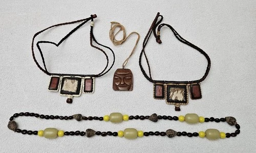 Vintage African Tribal Artisan Carved Jewelry Lot Some Rare Pieces Fur Leather