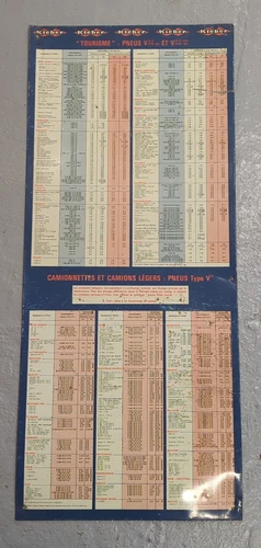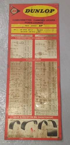 Vintage French DUNLOP Tyre Sizes Sign 82.5Cm x 31.5Cm