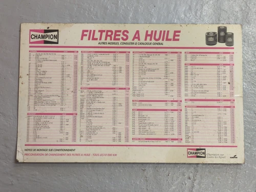 Vintage 1980s French Champion Oil Filters Card Sign 48Cm x 30Cm