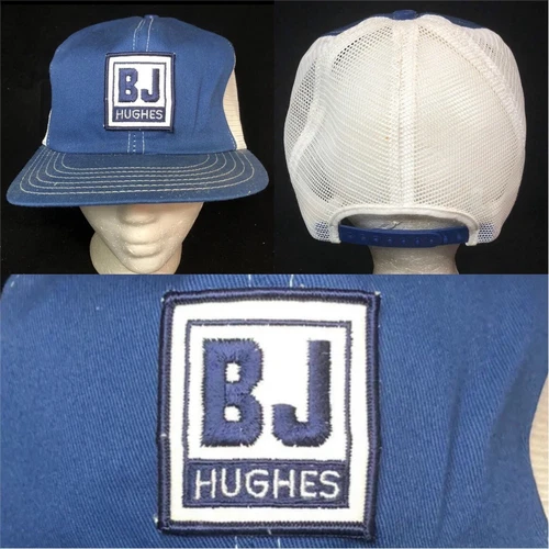 Vtg BJ Hughes Mesh Trucker Snapback Hat Oil Gas Company Logo Patch Farmer Cap