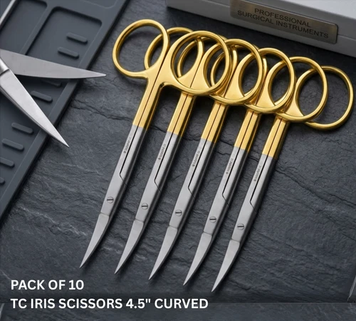 Pack of 10 TC Iris Scissors 4.5" Curved – German Quality Surgical Instruments