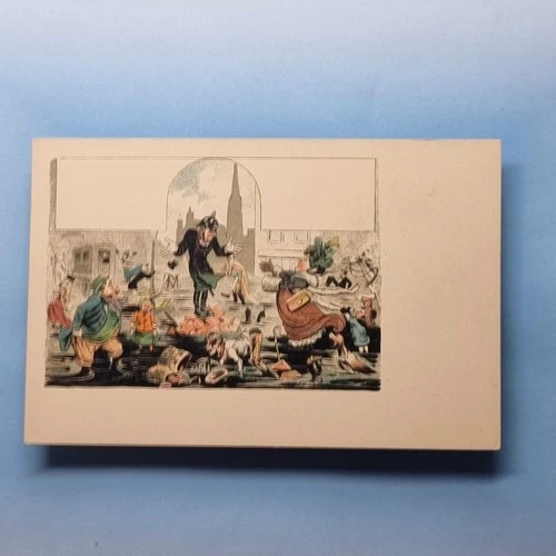German Political Satire Postcard C1895 Bismarck Economic Unrest People Drowning