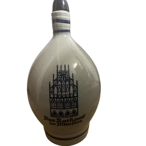 German Das Rathaus' zu Munfree--Jug Handle Bottle w/ Cork Stopper