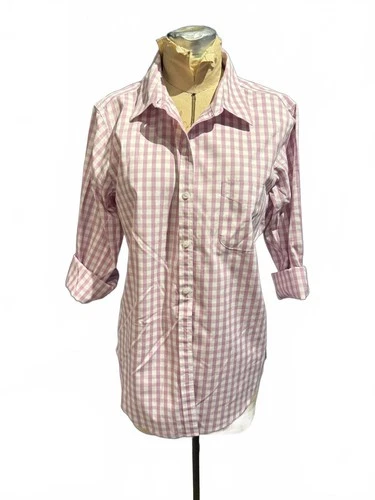 L.L. Bean Pink and White Gingham Button-Up Shirt