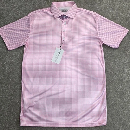 Collars and Co Men's Dress Collar Stretch Polo Shirt Size M Pink White Gingham