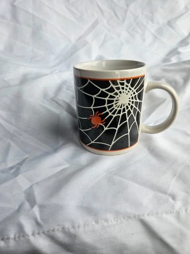 VTG 1992 J.I.I. Spider Web Cup Glow In Dark Halloween Exterminator Arachnid Mug