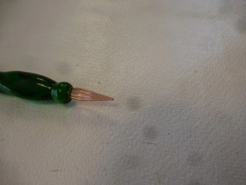 Murano glass dip pen/Calligraphy pen/Hand blown glass Green Red Tip Italy 1960s