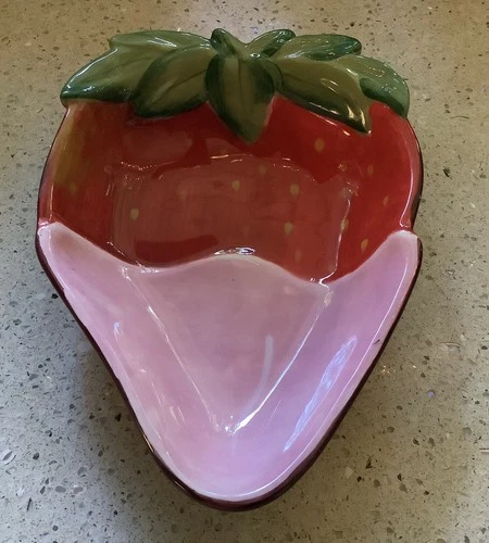 Dipped STRAWBERRY Shaped Dish / Plate, By Clay Art, Hand Painted, Ceramic