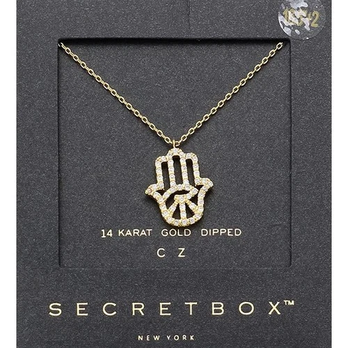 SECRET BOX_14K Gold Dipped CZ Hamsa Hand Evil Eye Pendant Necklace