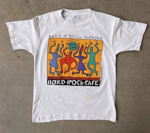 Vintage Hard Rock Cafe Shirt Medium 1992 Big Hed Keith Haring Style 90s Art Roll