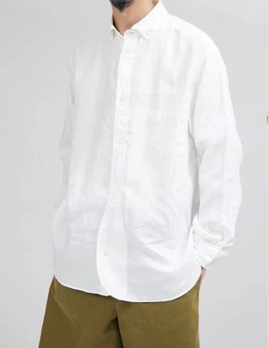 Nigel Cabourn British Officers Shirt Hemp White Size 52 Long Sleeve Button Down