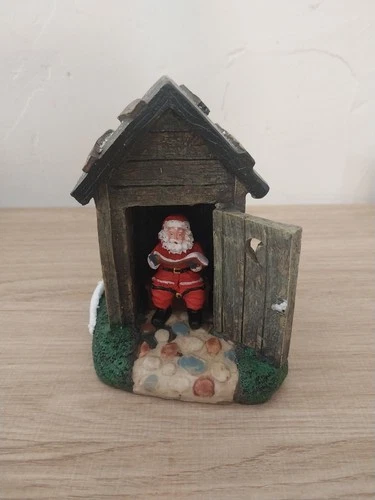Santa in Outhouse Christmas Village Holiday Decor