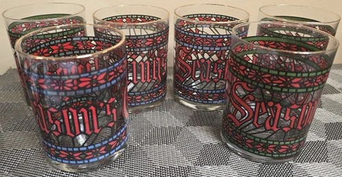 Vintage Set of 6 Double Old Fashioned HUZ1 by Houze Glass Co; Season's Greetings