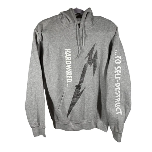 Metallica Hardwired Hoodie Mens S Gray Sleeve Graphic Destruct Sweatshirt RARE