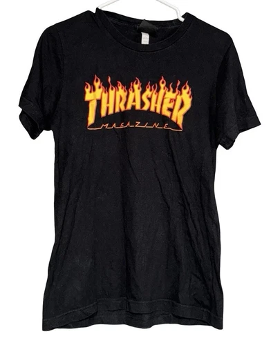 Thrasher Magazine Flames Logo Skateboard T-Shirt Men’s Size Small Black Vtg Y2K