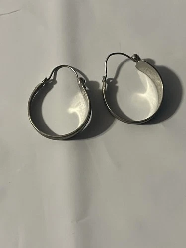 Vintage Silver Toned Hoop Earrings 1 Inch Etched Design Jewelry Classic