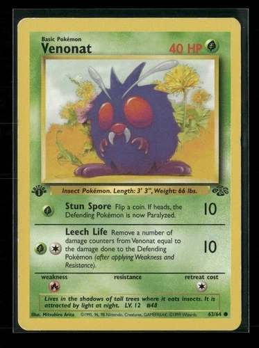 Venonat 63/64 1st Edition HP - Common - Jungle Pokémon TCG