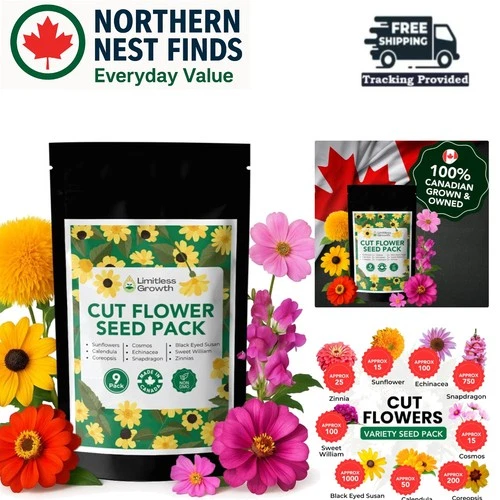 9 Variety Cut Flowers Seed Pack for Easy Bouquets | Perfect for Canadian Gardens