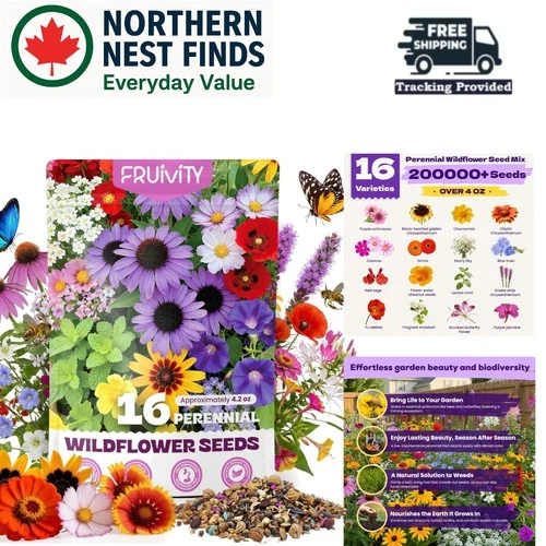 Canadian Wildflower Seed Mix 2500+ – 16 Varieties, Non-GMO, Attracts Pollinators