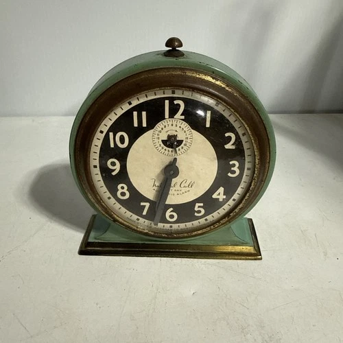 Vintage The National Call Eight Day Automatic Alarm Clock In Green Ingraham 1941