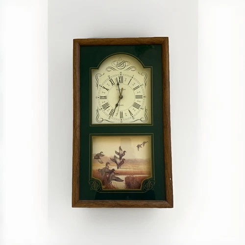 INGRAHAM Wall Clock Ducks Waterfowl Hunting Decor Marsh 24" Tested & Works