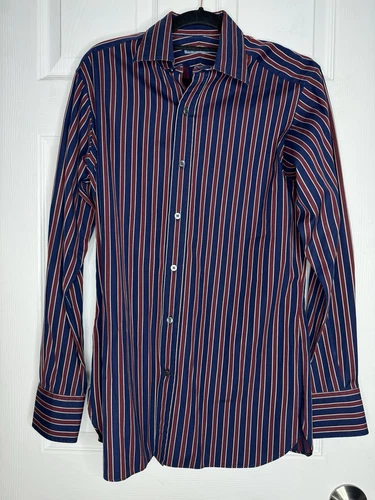 SEIZE SUR VINGT Men’s 100% Cotton Maroon Blue Striped Italian Button Down